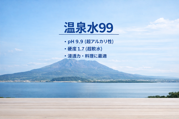 温泉水99は、鹿児島県垂水市の地下750mから湧き出る天然の温泉水で